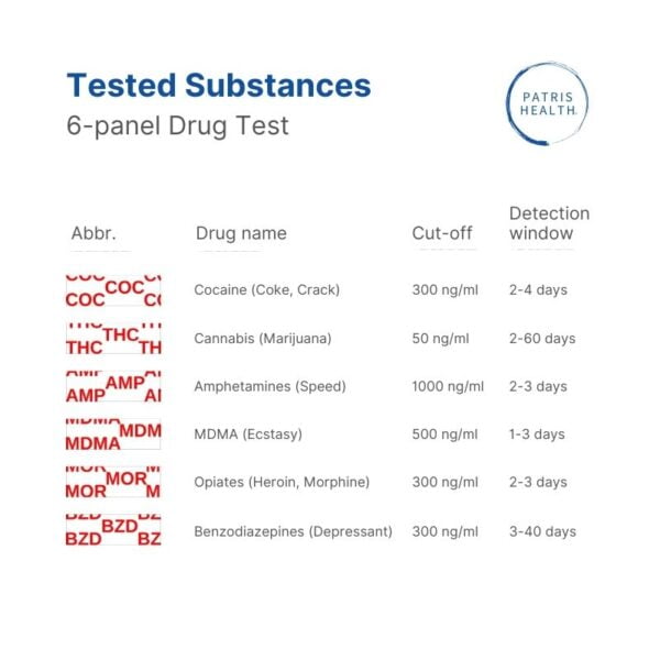 Essential information about the Patris Health 6-Panel Home Urine Multi-Drug Test?